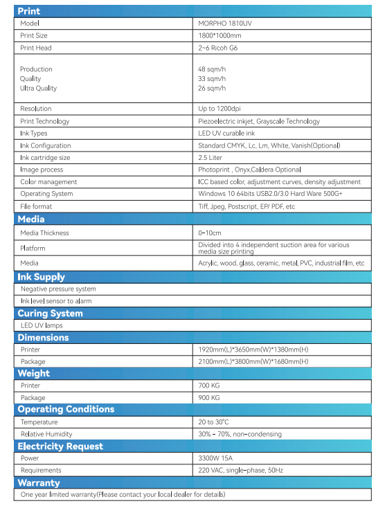Se produktblad: RS Morpho 1810 UV-Flatbed